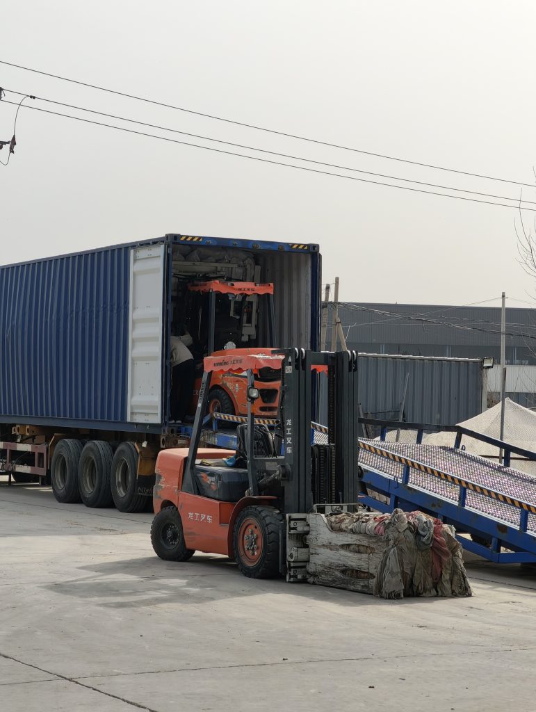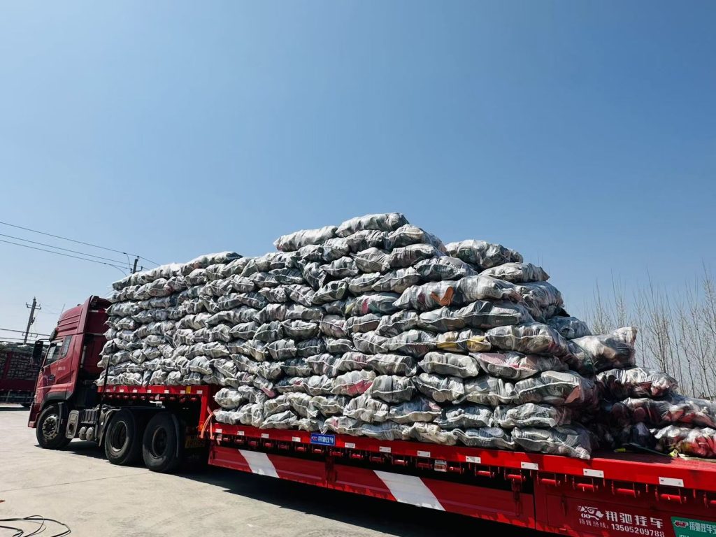 Once packing is done, we load the container. For used shoes, a 40ft container holds about 25,000kg. Our team can usually finish loading within one week after the order is confirmed and the goods are ready.